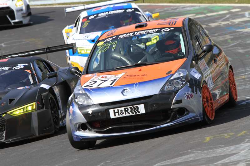 Michael Bohrer (AMC Duisburg), im Renault Clio RS in der Klasse SP3 mit Teamkollegen Michael Uelwer und Dr. Volker Kühn am Steuer setzte sich gleich nach dem Start ab und fuhr pro Runde fünf Sekunden auf die Verfolger raus und konnte mehrere leistungsstärkere Fahrzeuge überholen. Nach seinem Stint übergab er klar in Führung liegend das Fahrzeug an Michael Uelwer. Dieser fing sich einen Reifenschaden ein (es lagen wegen der vielen Kollisionen Carbonteile auf der Stecke), konnte sich noch zur Box retten. Nach dem Reifenwechsel ging es wieder auf die legendären Nordschleife doch wenig später gab es Bremsprobleme am Renault Clio und das Team aufkleben.de entschied aus Sicherheitsgründen den Clio aus dem Rennen, auf Platz drei liegend, zu nehmen.