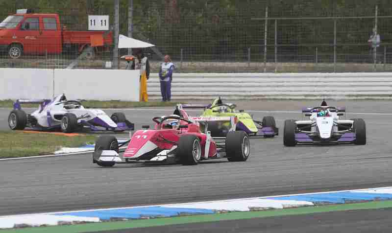 Der Re-Start erfolgte nach vier Runden und ging zu Gunsten der Führenden aus. Wenig später machte sie einen kleinen Fehler und sofort konnte Jamie Chadwick die Führung übernehmen. In der Spitzkehre kam es zu einigen Positionsverschiebungen im hinteren Feld. Nach fünf gefahrenen Runden lag das Feld immer noch dicht beieinander. Die ersten beiden konnten sich nach sechs Runden mit über 1,7 Sekunden vom Feld absetzen. Beitske Visser auf Rang vier hatte eine Armada von acht Fahrzeugen hinter sich. Die Niederländerin musste absolute Kampflinie fahren, denn Fabienne Wohlwend versuchte immer wieder Beitske Visser in einen Fehler zu treiben. Im nach hinein wurde sie dann aber von Sarah Moore attackiert und musste diese dann ziehen lassen.